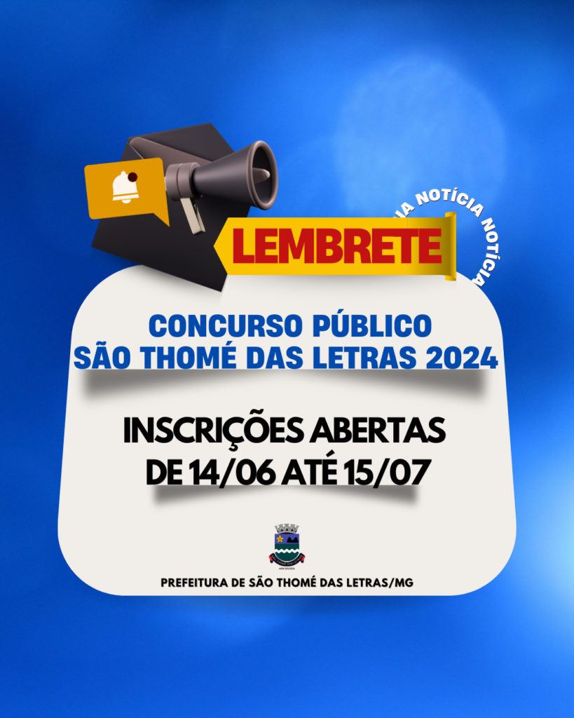 ABERTAS INSCRIÇÕES PARA O CONCURSO PÚBLICO 2024 NA PREFEITURA DE SÃO THOMÉ DAS LETRAS ATÉ 15/07