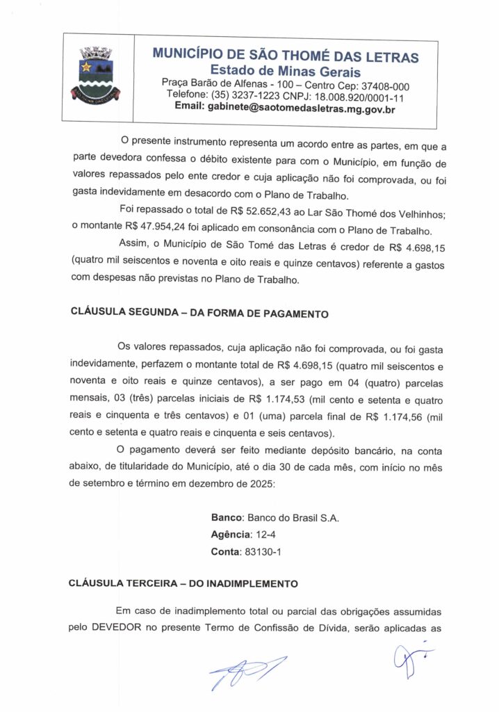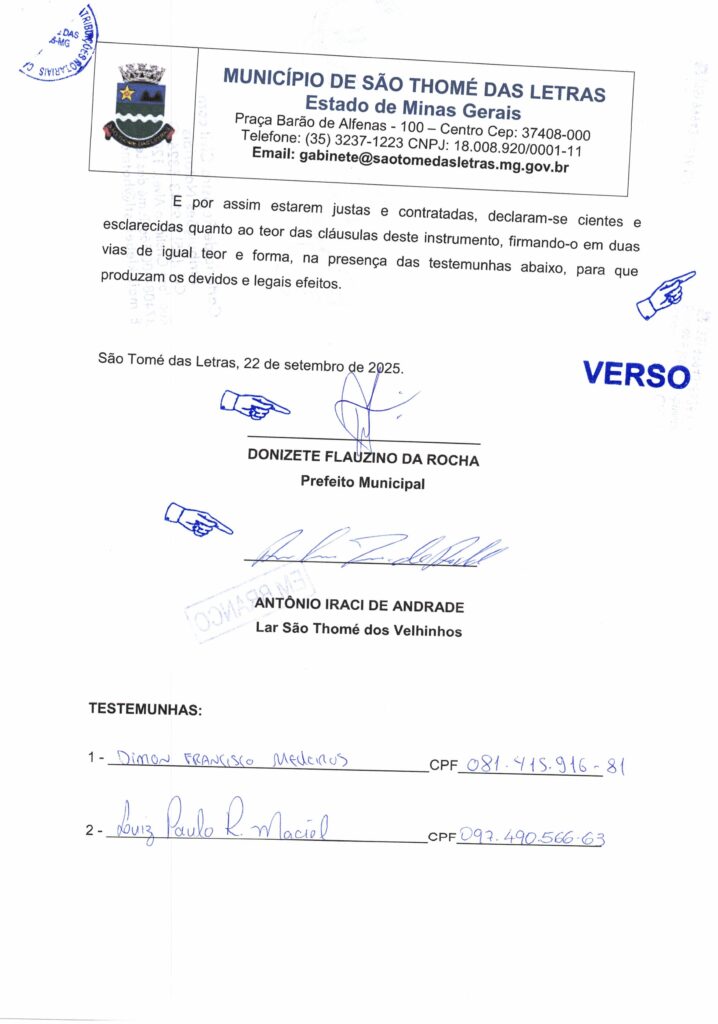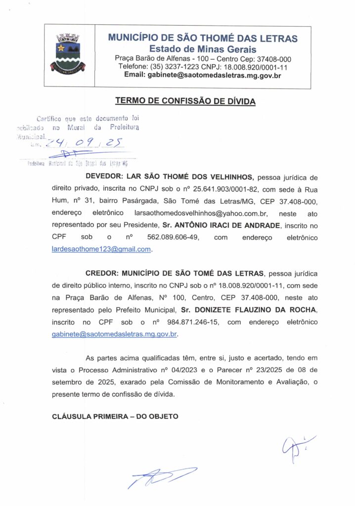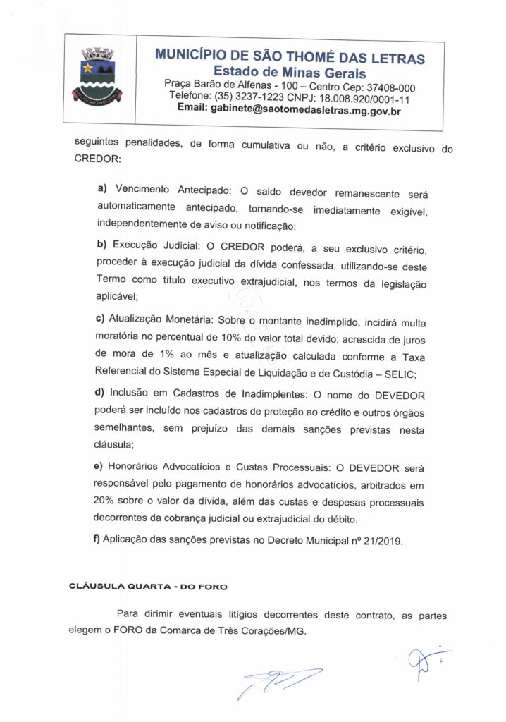 O PREFEITO MUNICIPAL DE SÃO TOMÉ DAS LETRAS, Tomé Reis Alvarenga, no uso das