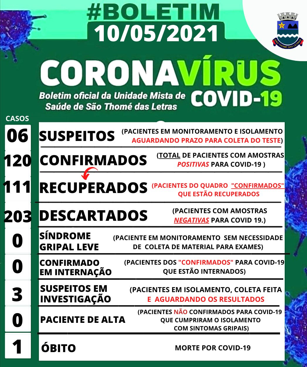 Departamento Municipal de Saúde informa: atualização em São Thomé das Letras – (TODO PROCEDIMENTO DE TESTAGEM É REALIZADO A PARTIR DO AVAL E MONITORAMENTO MÉDICO, RESPEITANDO O PROTOCOLO DO MINISTÉRIO DA SAÚDE PARA A EFETIVIDADE DO TESTE.)