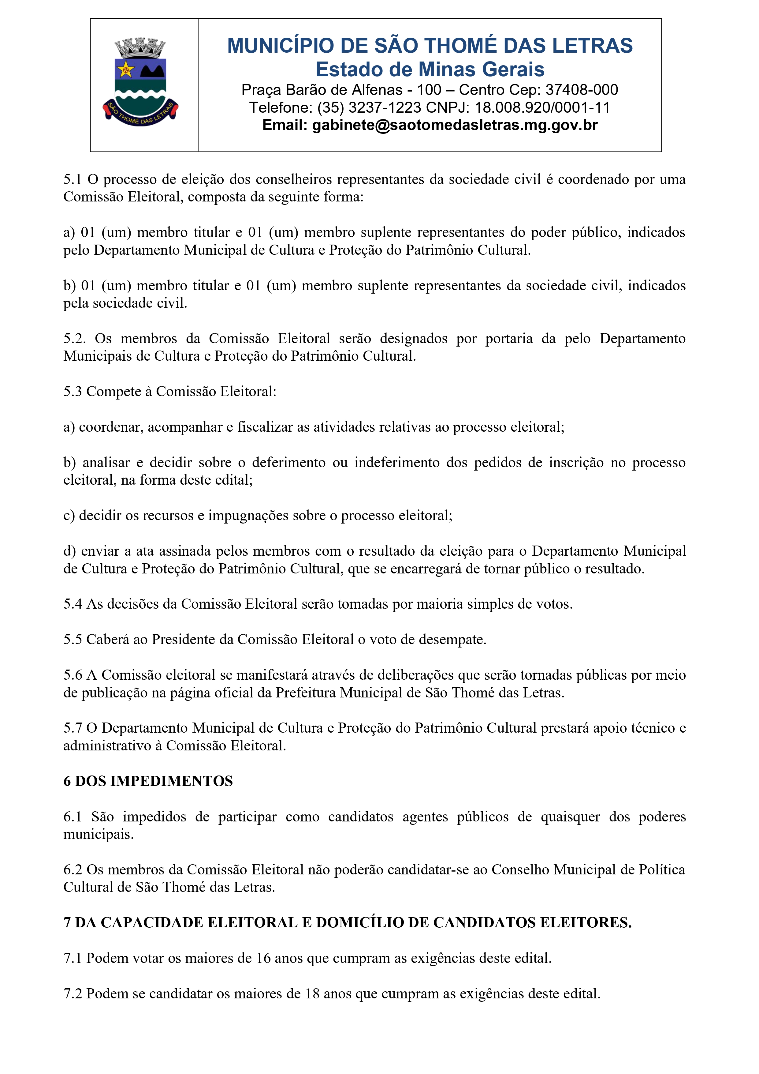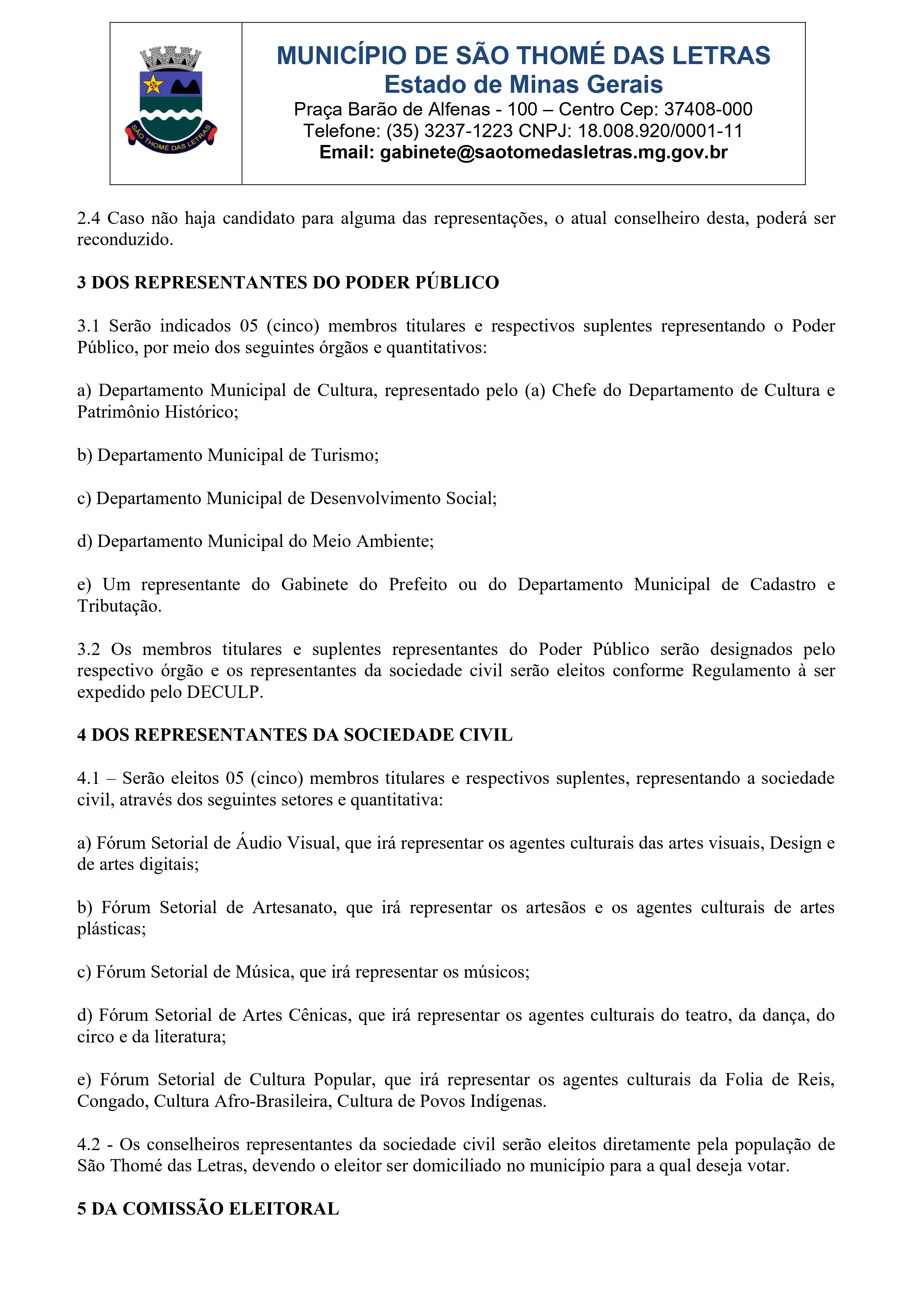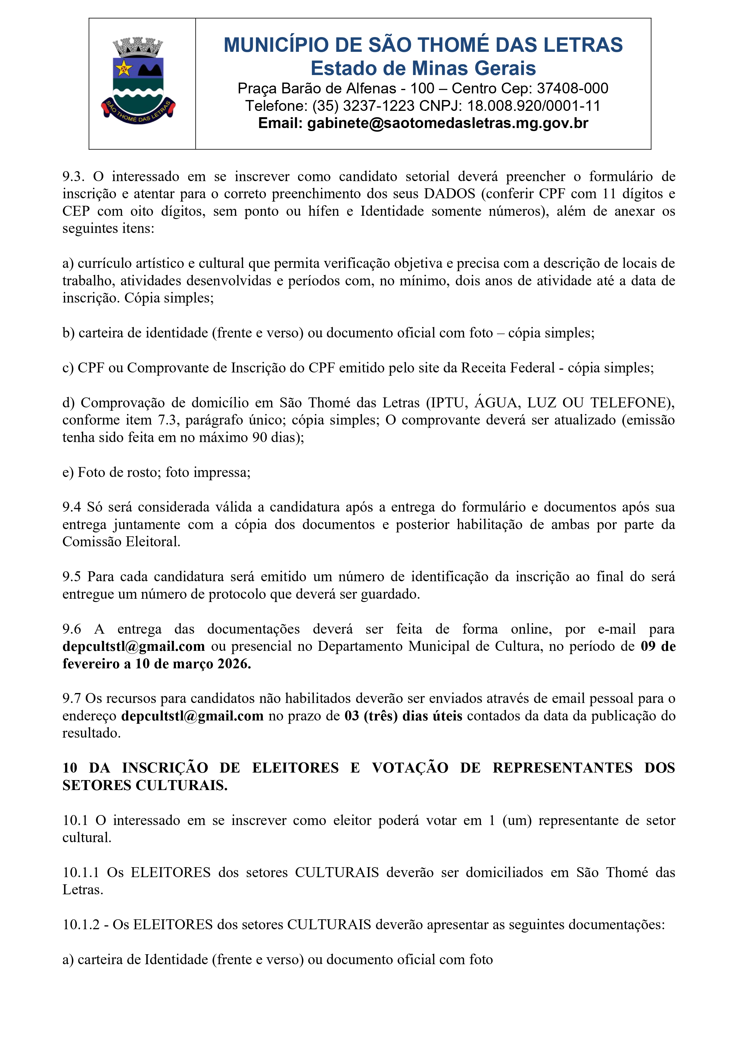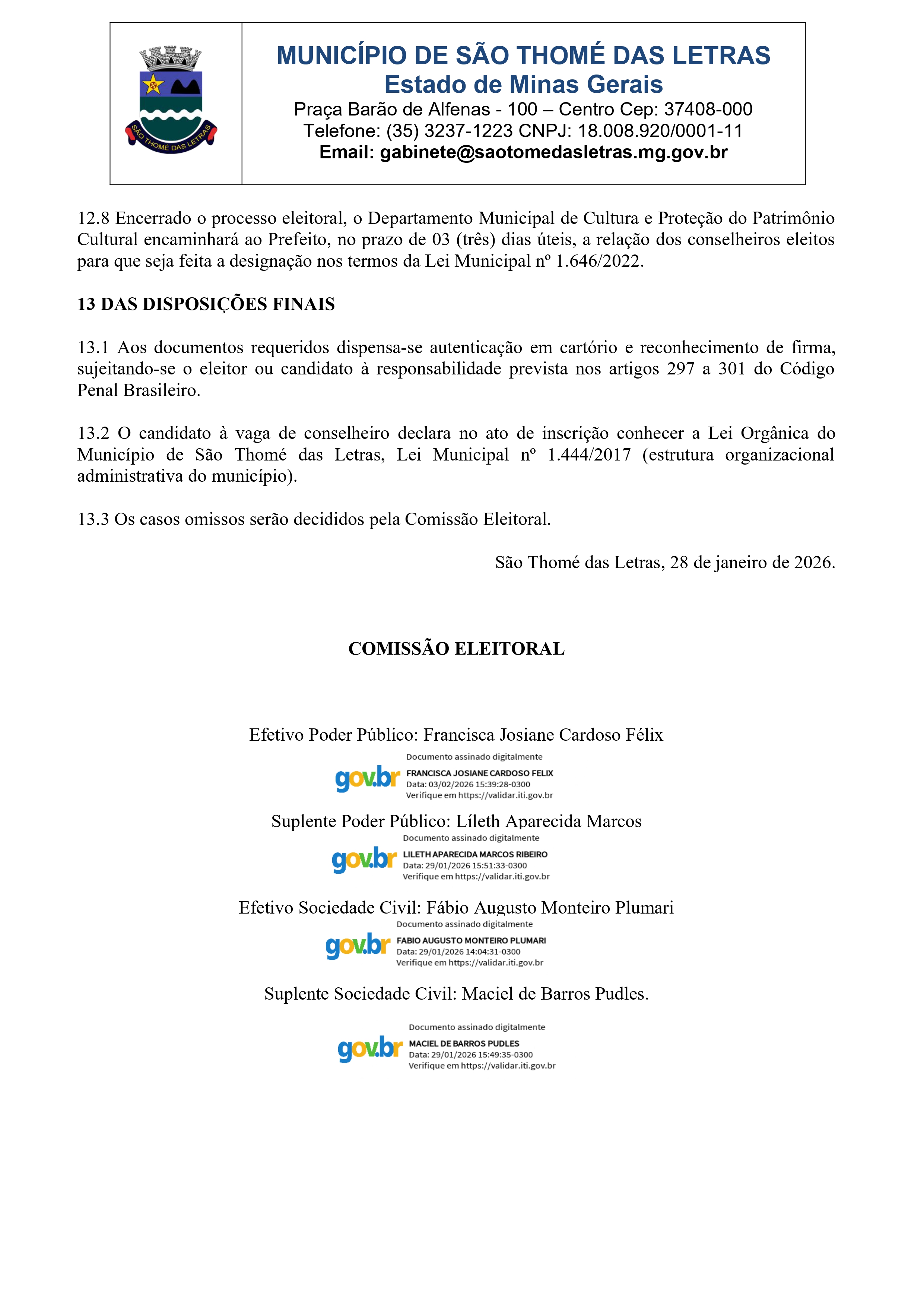 EDITAL 01 DE ELEIÇÃO DOS CONSELHEIROS REPRESENTANTES DA SOCIEDADE CIVIL PARA COMPOSIÇÃO DO CONSELHO MUNICIPAL DE POLÍTICA MUNICIPAL CULTURAL DE SÃO THOMÉ DAS LETRAS 2026-2028