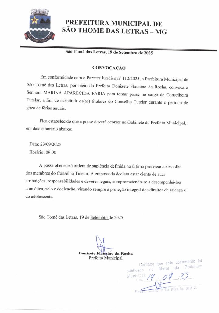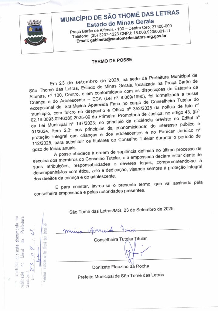 PARA POSSE DE CONSELHEIRA TUTELAR PARA SUSBTITUIÇÃO OS TITULARES DO CONSELHO TUTELAR DURANTE PERÍODO DE FÉRIAS