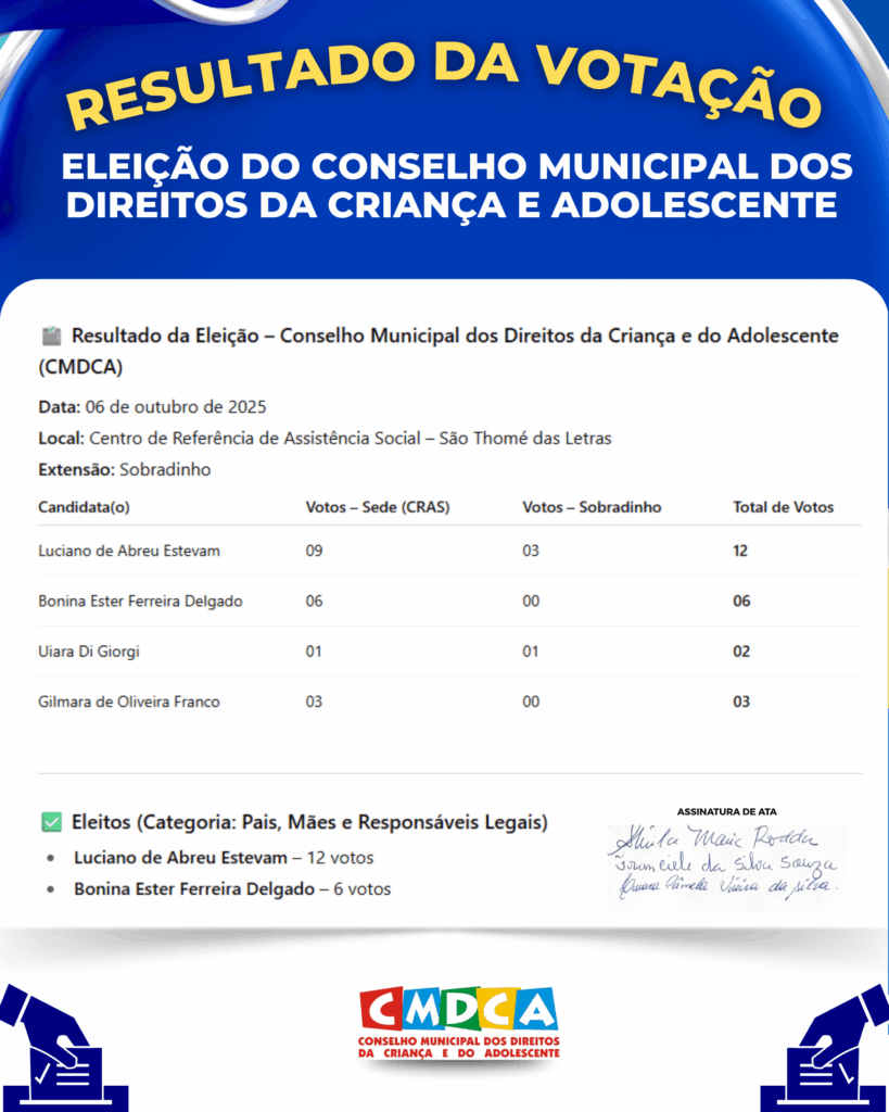 ATA E RESULTADO DA ELEIÇÃO DO CMDCA 2025 – CONSELHO MUNICIPAL DOS DIREITOS DA CRIANÇA E ADOLESCENTE ATA eleição_page-0001Baixar