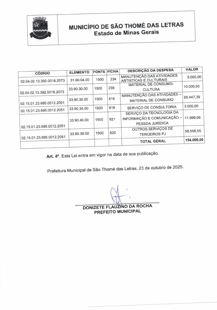 Baseada na (ufstl) Unidade Fiscal de São Thomé das Letras, as taxas sofreram ajustes de 4,34R$