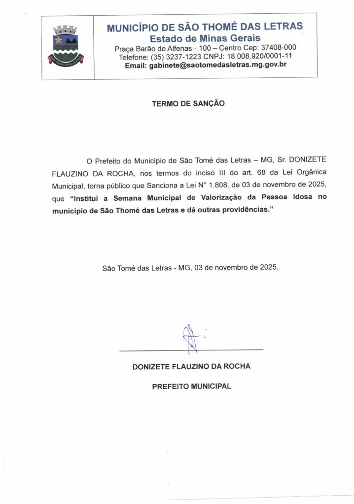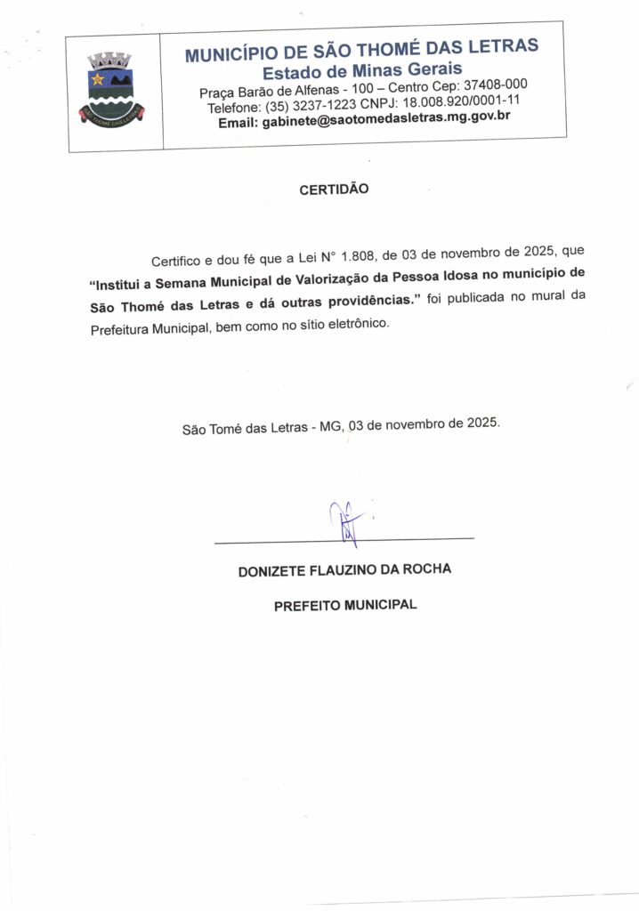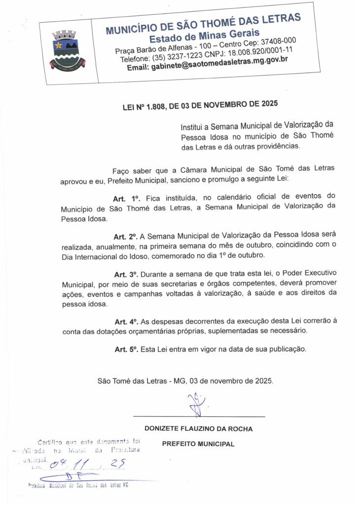 LEI 1.808/2025 INSTITUI A SEMANA MUNICIPAL DE VALORIZAÇÃO DA PESSOA IDOSA NO MUNICÍPIO DE SÃO THOMÉ DAS LETRAS