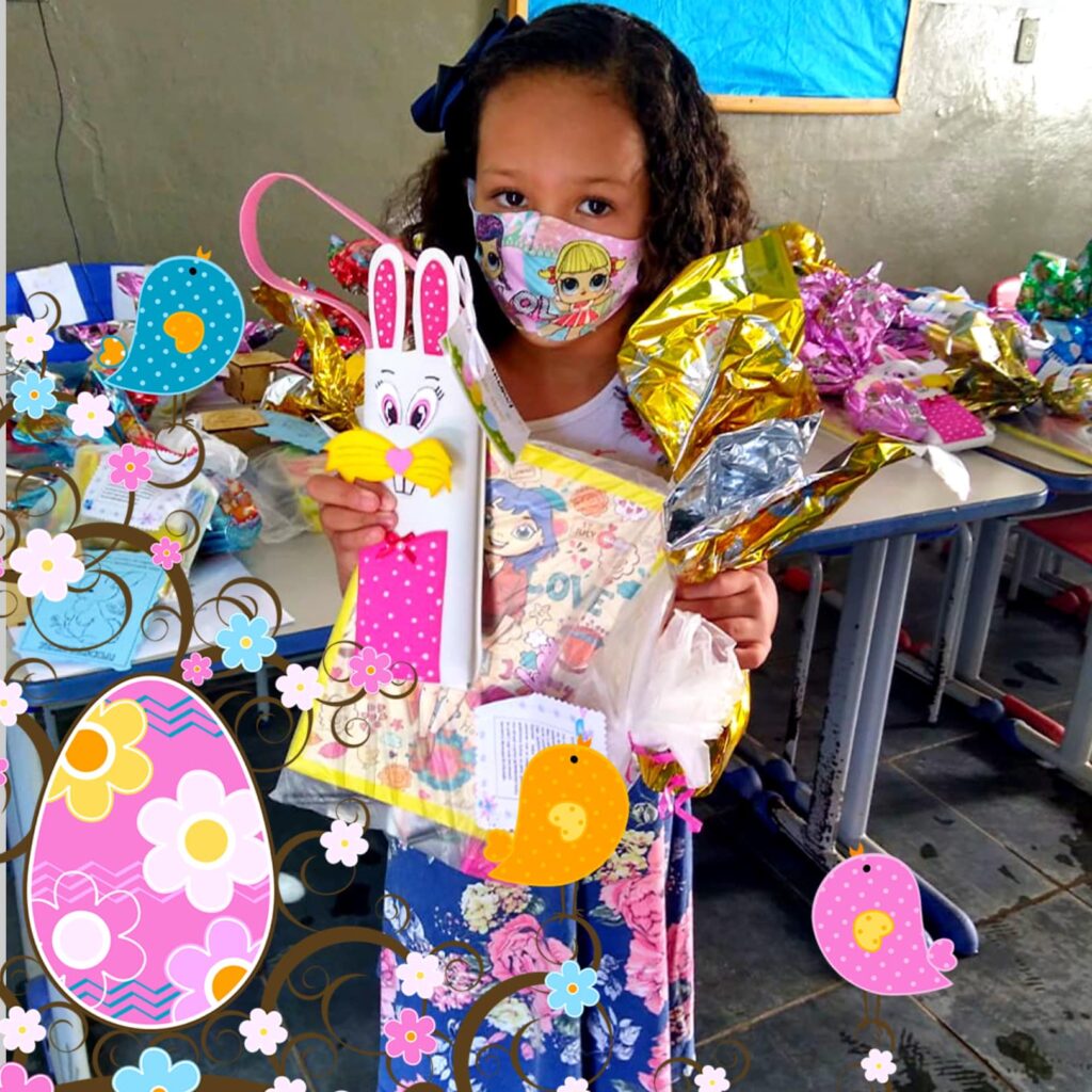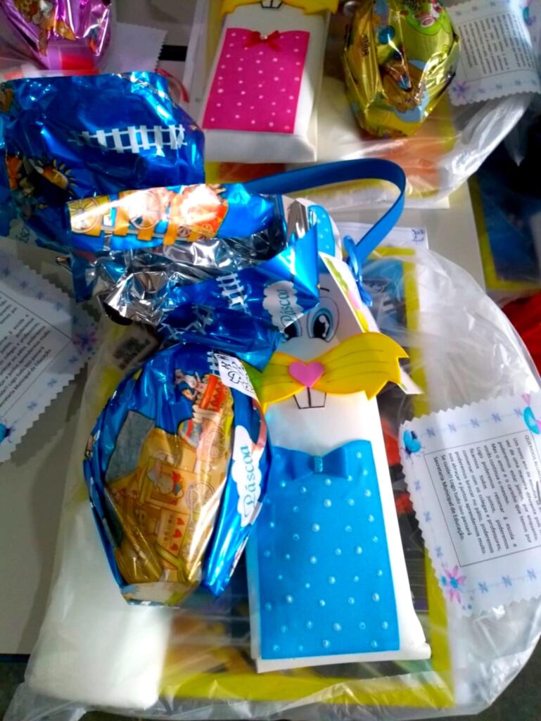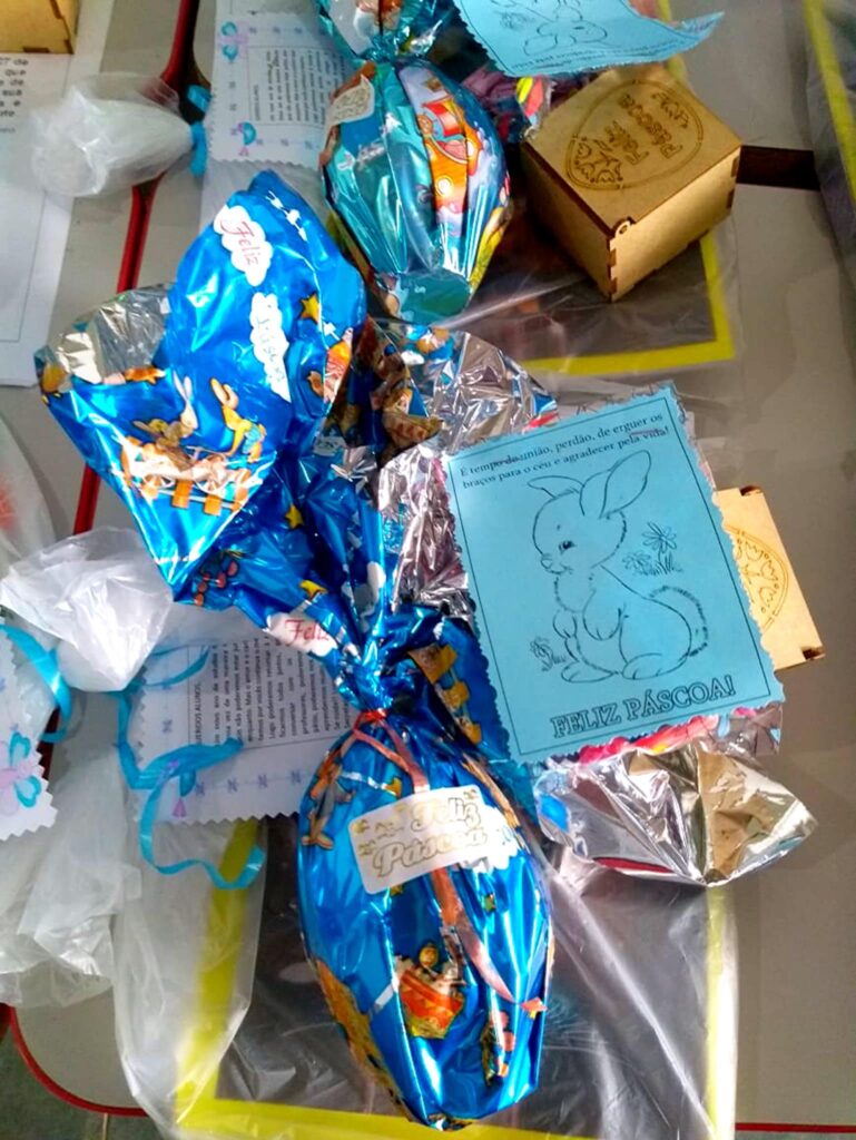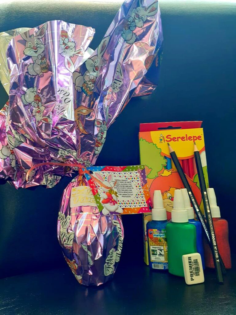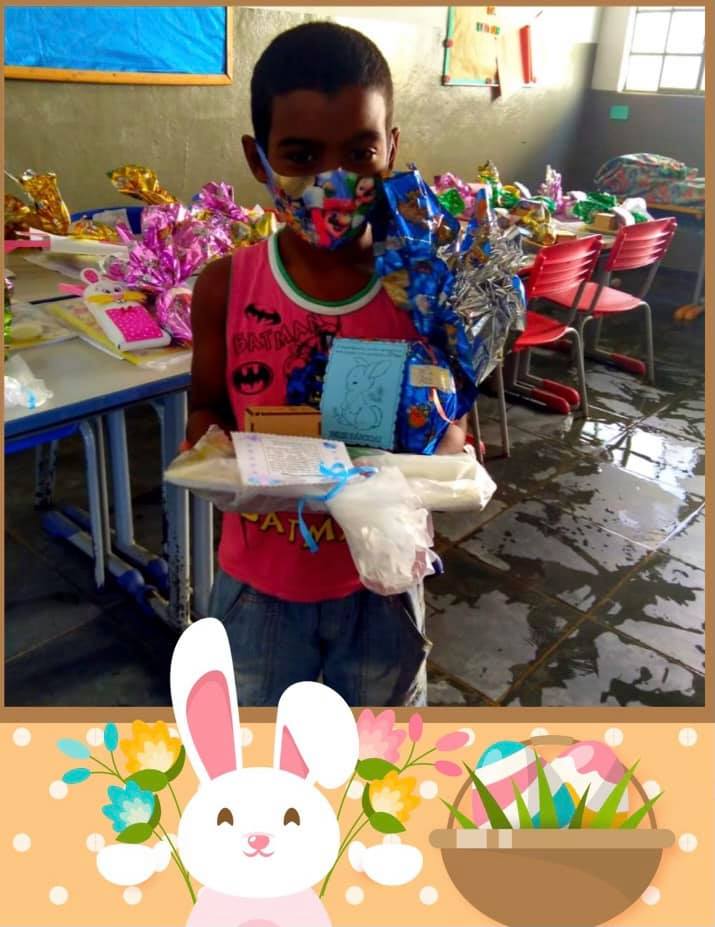 Em comemoração à Páscoa, durante a semana foram entregues os ovos de Páscoa, kit escolar e desenhos com atividades de colorir para as crianças da rede municipal de educação de São Thomé das Letras. Os itens foram distribuídos para os responsáveis que compareceram nas escolas; devido à pandemia as crianças não puderam estar presentes.