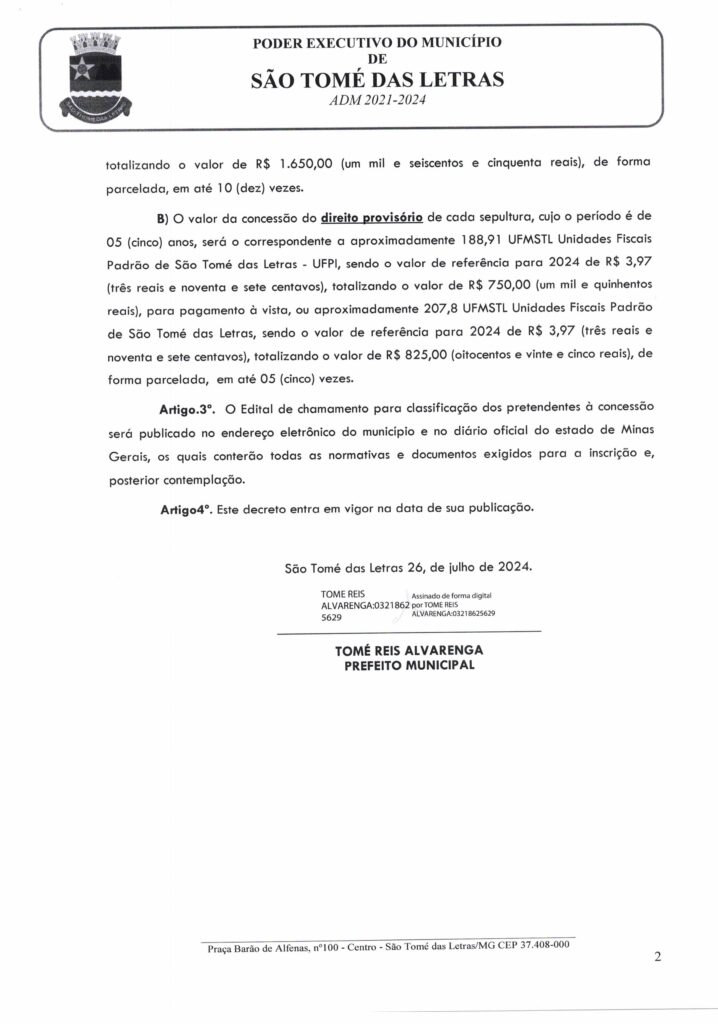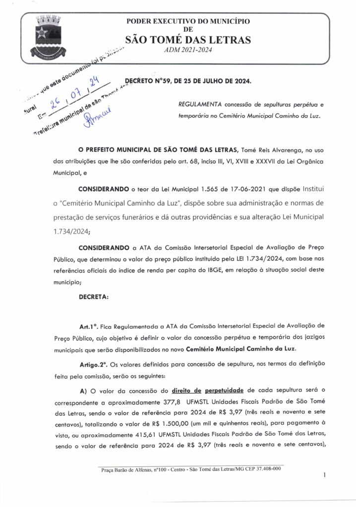 DECRETO 59 – REGULAMENTA CONCESSÃO DE SEPULTURA PERPÉTUA E TEMPORÁRIA NO CEMITÉRIO MUNICIPAL CAMINHO DA LUZ Início / Notícia /
