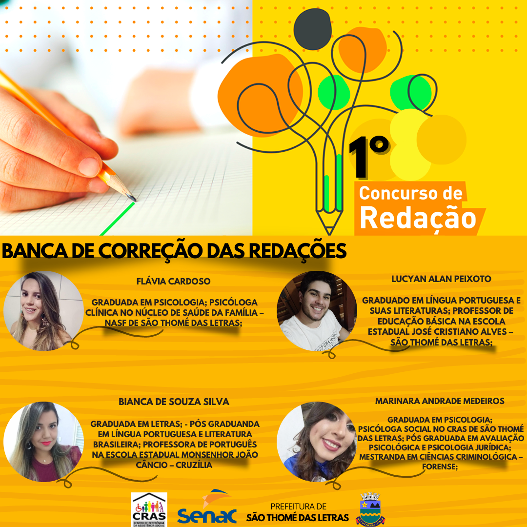 A Prefeitura Municipal de São Thomé das Letras, por meio do Departamento Municipal de Desenvolvimento Social – DMDS, do Centro de Referência de Assistência Social – CRAS e do CadÚnico – Cadastro Único para Programas Sociais do Governo Federal, comunica que está formada a banca de correção das redações do I Concurso Municipal de Redação Geração.