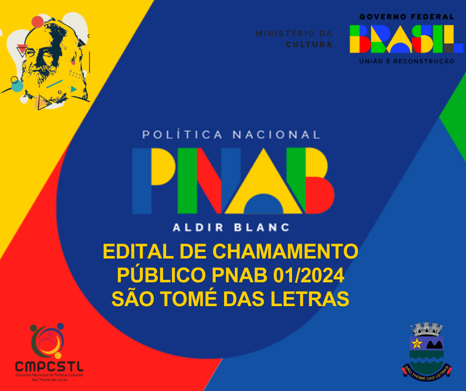 A Prefeitura de São Tomé das Letras tem o prazer de anunciar a abertura do Edital de Chamamento da Política Nacional Aldir Blanc de Fomento à Cultura (PNAB)!