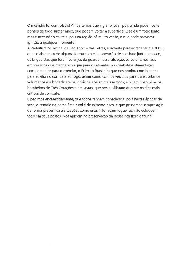 Incêndio foi controlado
