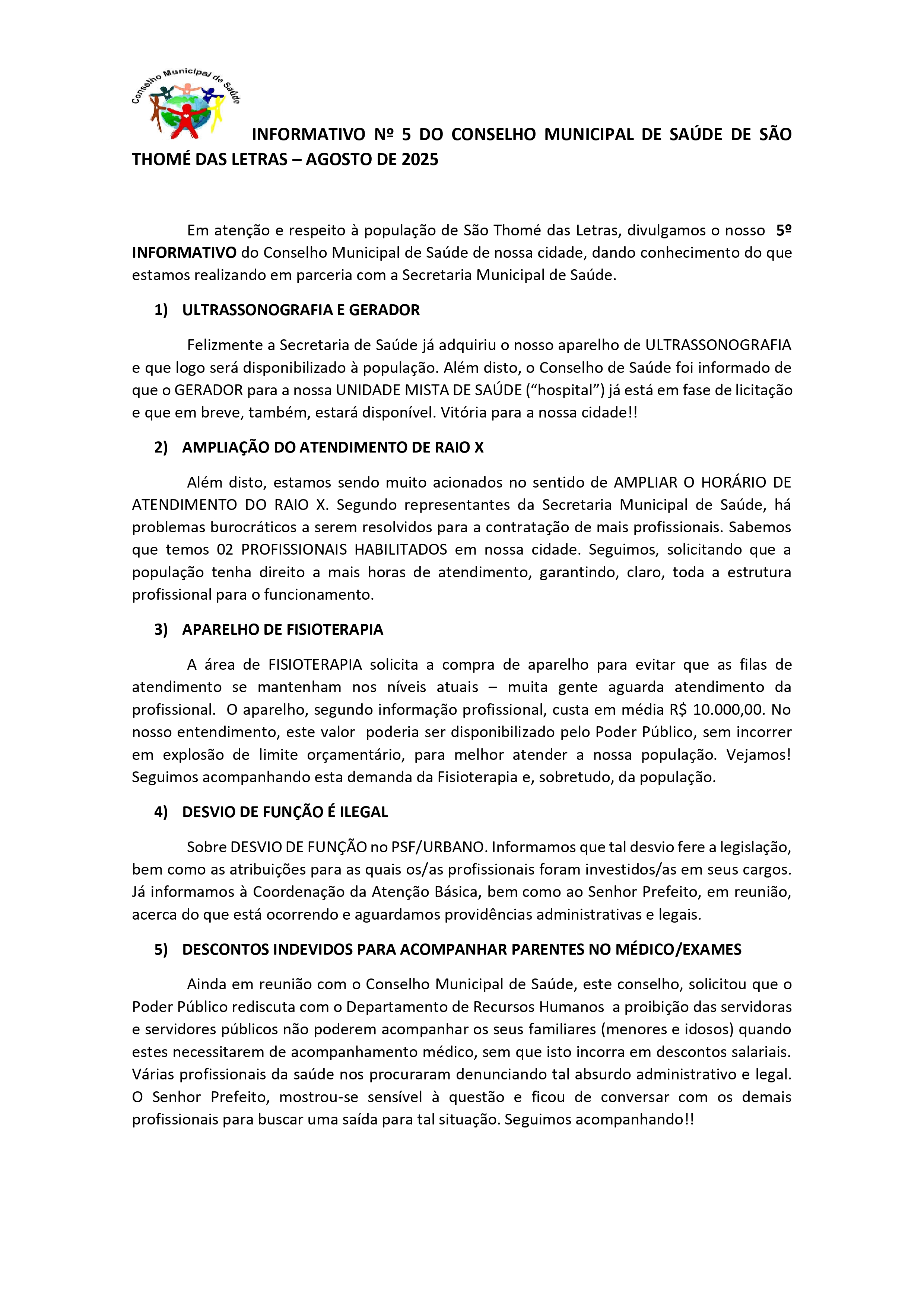 INFORMATIVO 5 DO CONSELHO MUNICIPAL DE SAÚDE – AGOSTO 2025