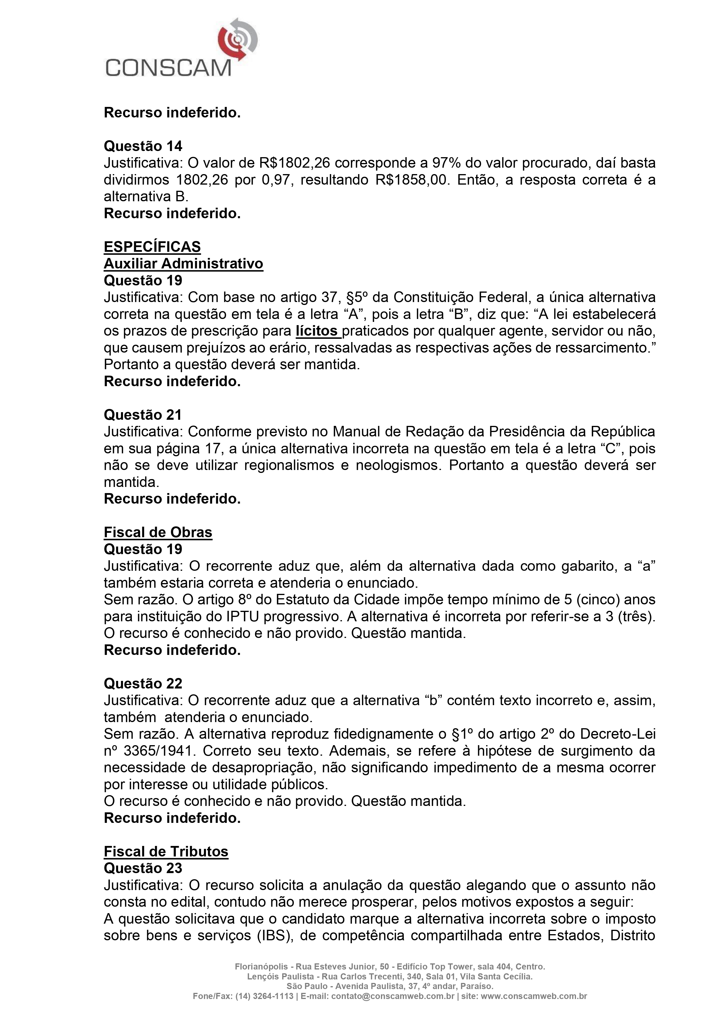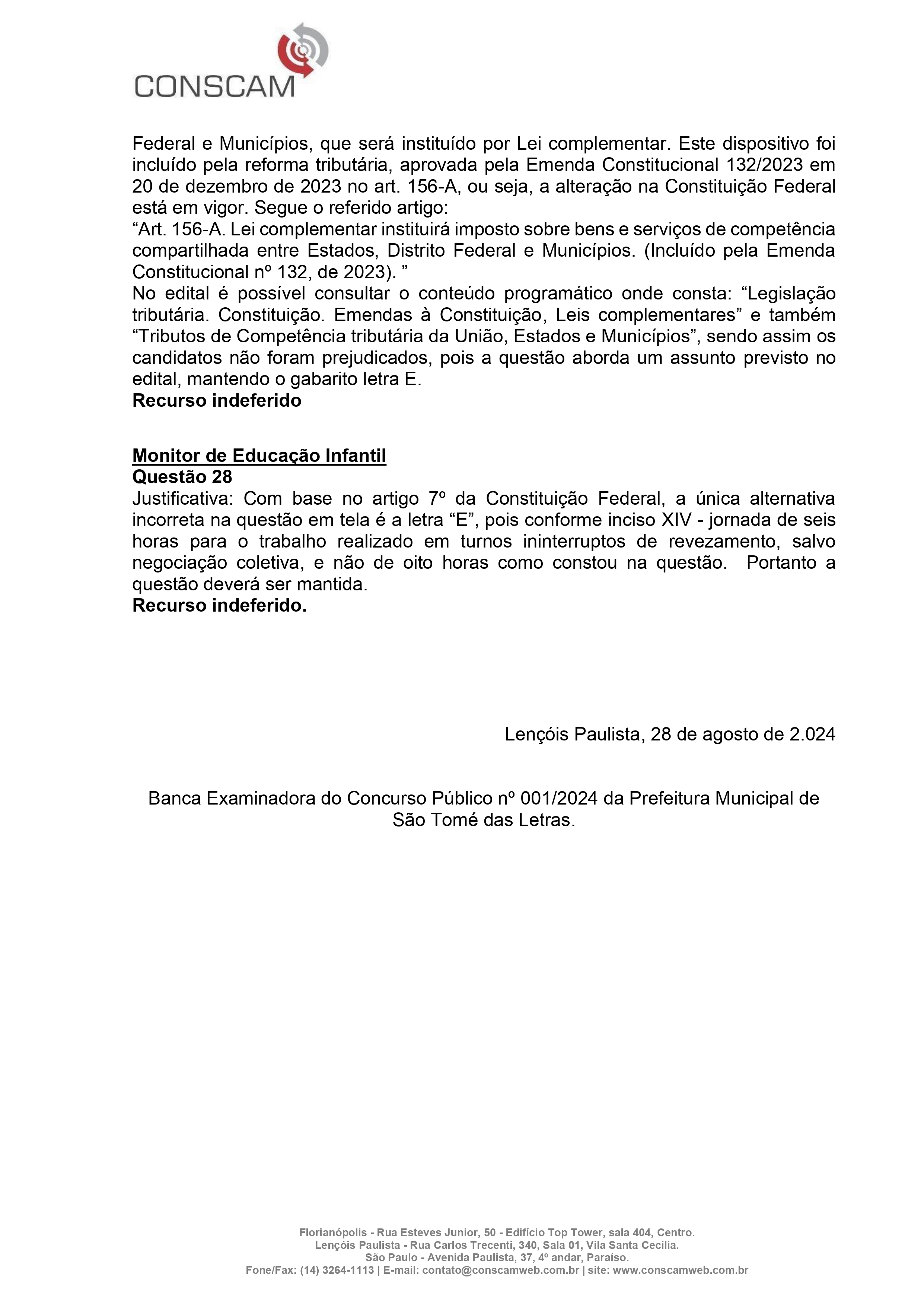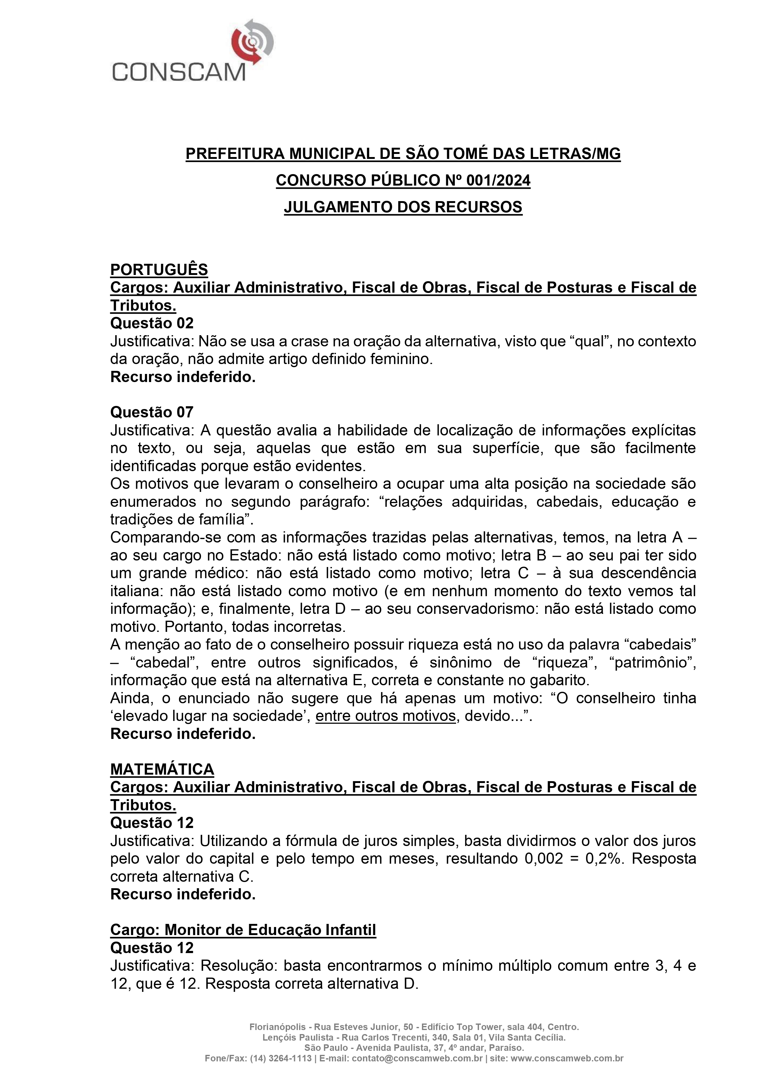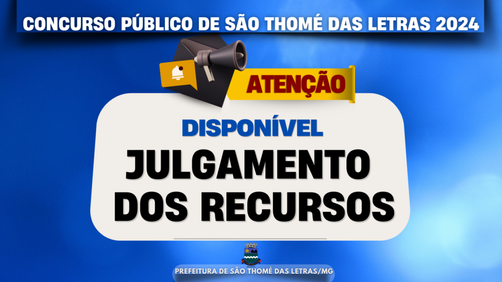 JULGAMENTO DOS RECURSOS – CONCURSO PÚBLICO 2024 – PREFEITURA DE SÃO THOMÉ DAS LETRAS 2024 Início / Notícia /