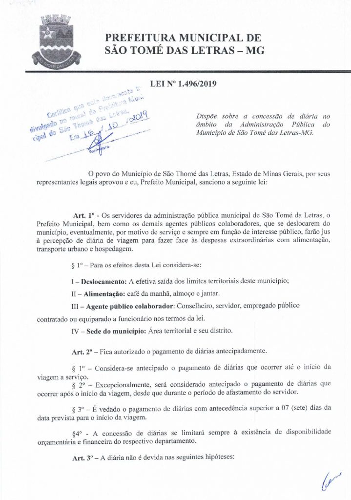 Concessão de Diaria da administração Publica do Município de São Tome das Letras