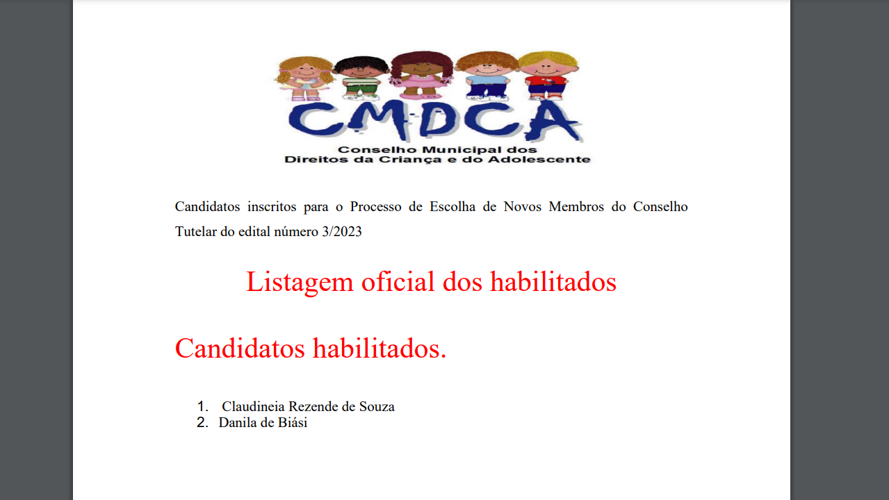 LISTA DE CANDIDATOS DEFERIDOS E INDEFERIDOS NO PROCESSO DE ELEIÇÃO DO CONSELHO TUTELAR 2023 EM SÃO THOMÉ DAS LETRAS Início / Notícia /
