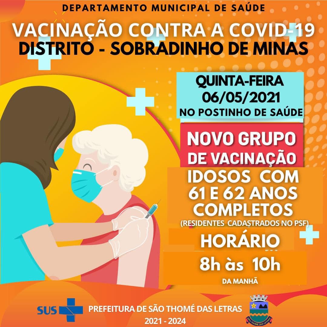 NESTA QUINTA-FEIRA 06/05 EM SOBRADINHO ACONTECE A VACINAÇÃO DA PRIMEIRA DOSE CONTRA A COVID-19 PARA IDOSOS COM 62 E 61 ANOS.