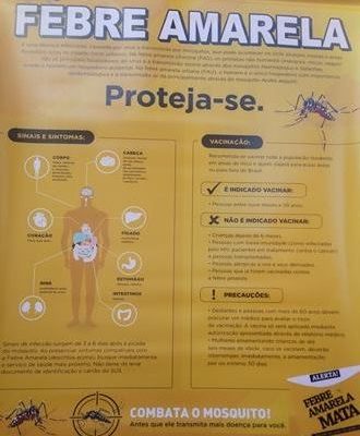 Departamento de saúde municipal emite nota informativa sobre a febre amarela