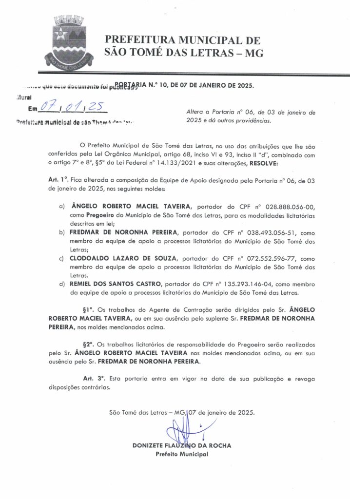 PORTARIA Nº 10 ALTERA A PORTARIA Nº6 DE 03/01/2025