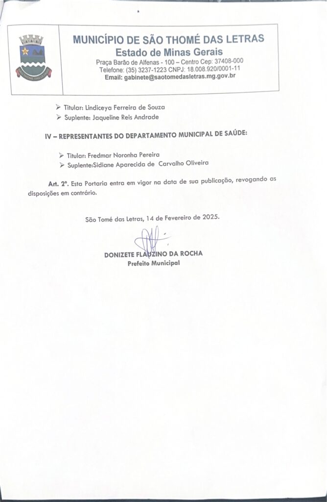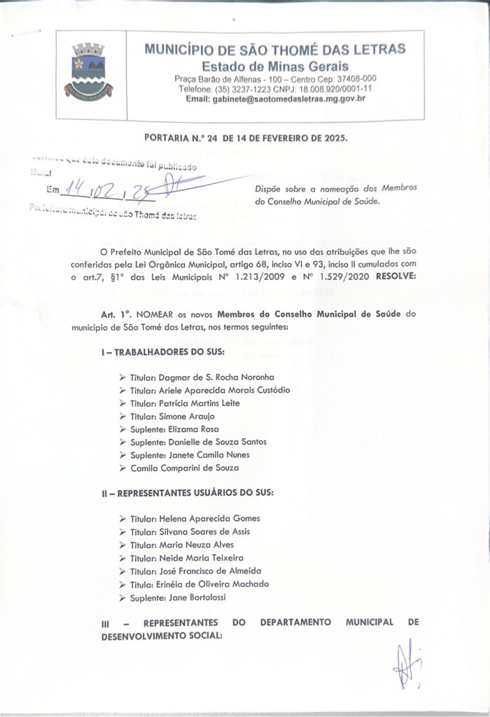 PORTARIA Nº24 – DISPÕE SOBRE A NOMEAÇÃO DOS MEMBROS CONSELHO MUNICIPAL DE SAÚDE