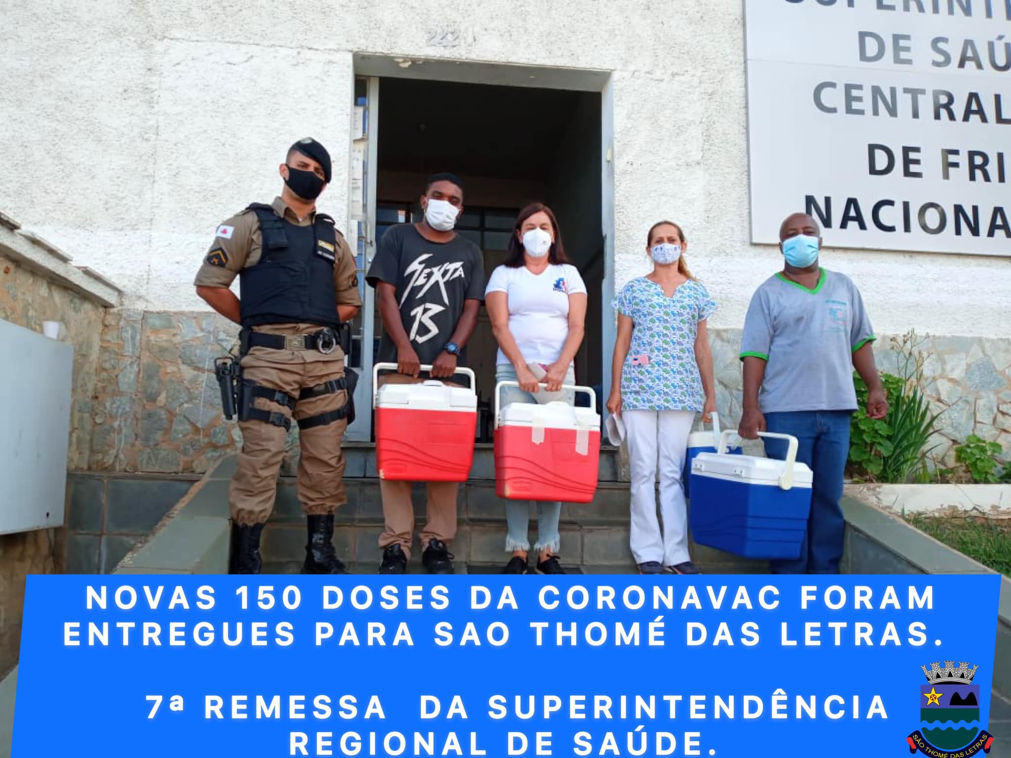 SÃO THOMÉ DAS LETRAS RECEBE NOVAS 150 DOSES DA CORONAVAC NA 7ª REMESSA ENTREGUE PELA SUPERINTENDÊNCIA REGIONAL DE SAÚDE.