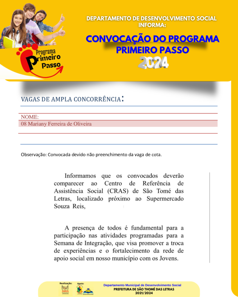 SEGUNDA CONVOCAÇÃO – PROGRAMA PRIMEIRO PASSO