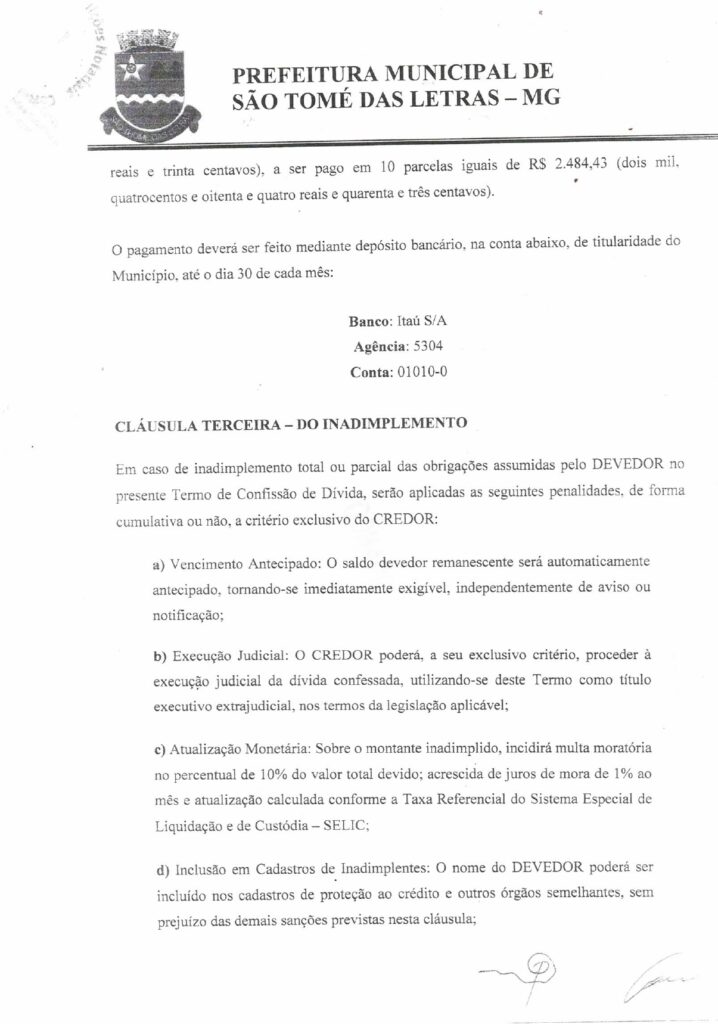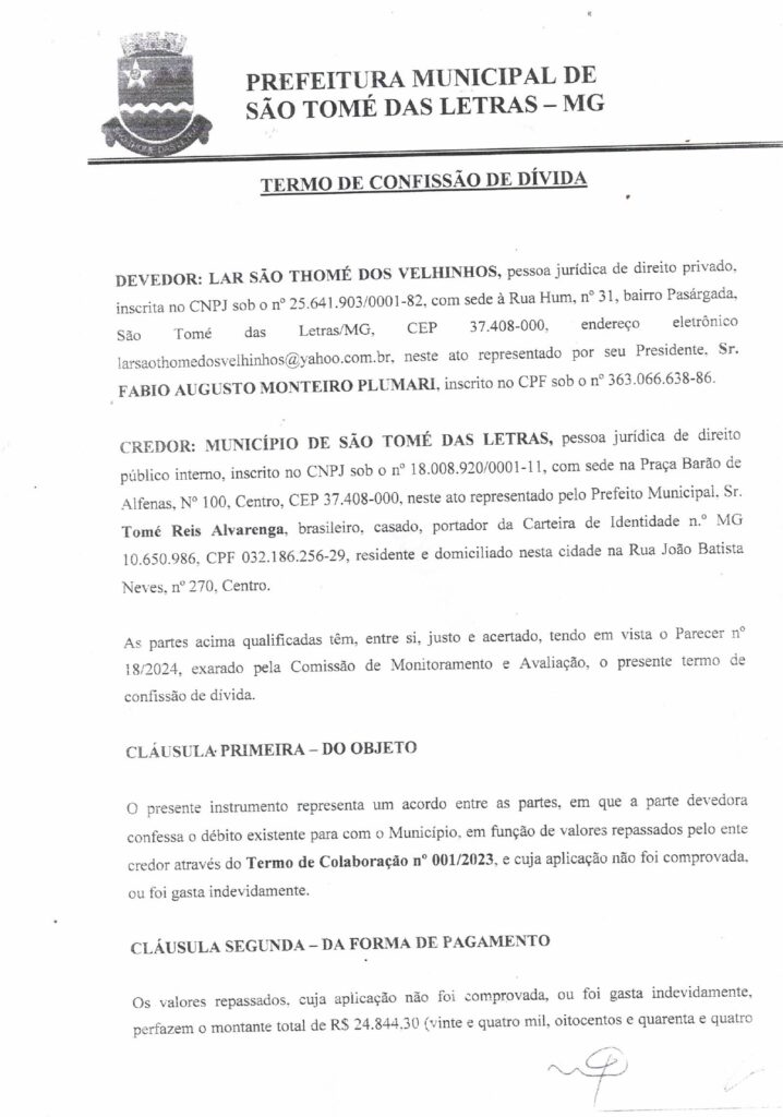 TERMO DE CONFISSÃO DE DÍVIDA – LAR SÃO THOMÉ DOS VELHINHOS