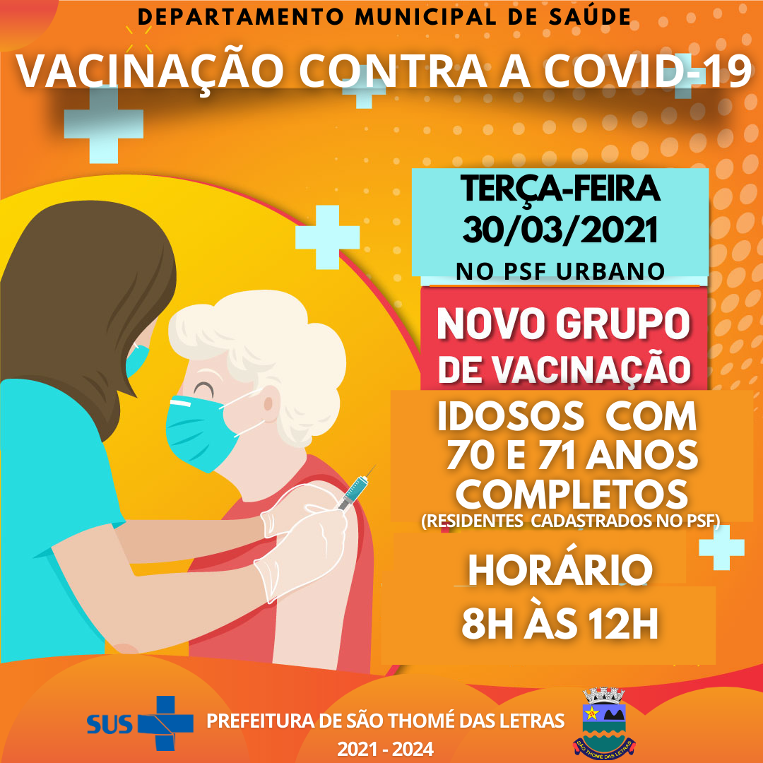 VACINAÇÃO PARA IDOSOS COM 70 E 71 ANOS ACONTECE NESTA TERÇA-FEIRA 30 DE MARÇO.