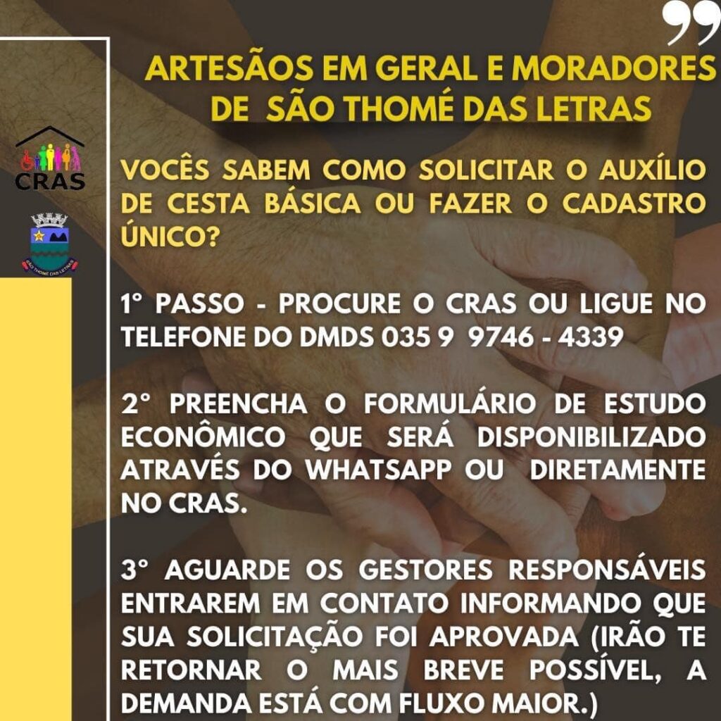 VEJA COMO SOLICITAR A CESTA BÁSICA E REALIZAR O CADASTRO ÚNICO NO CRAS MUNICIPAL.